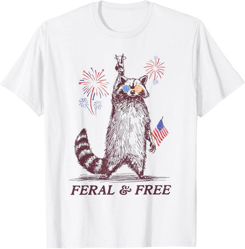 The Feral & Free Raccoon Tee is a unisex 4th of July shirt.